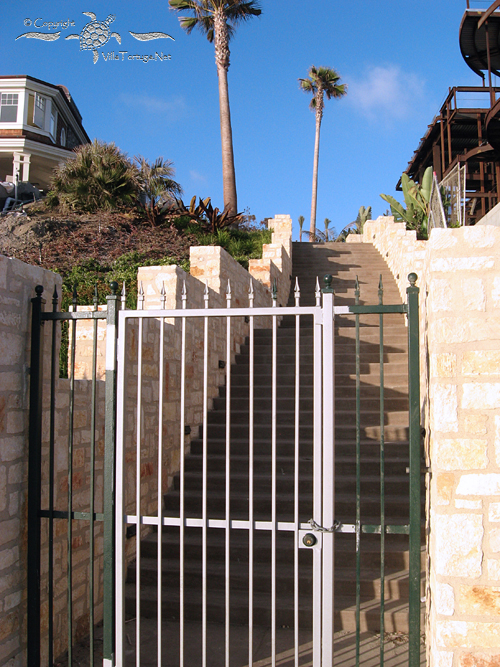 These stairs are directly accross from Villa Tortuga and provide the shortest (but steepest) route to the center of Strands Beach. They pass though the center of the Multi-Million dollar homes of the Headlands property. There are no restrooms or showers at this access point.