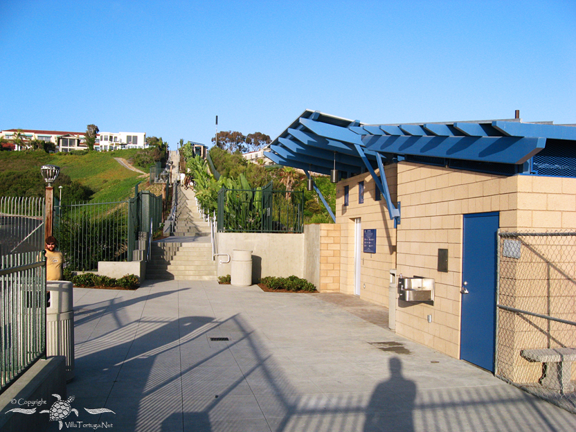 This entrance was the original Strand beach access point. The stairs have been completely rebuilt and place you on the part of the beach closest to the Ritz Carlton. A funicular tram car is available to shuttle passengers parallel to the stairs, and there are restrooms and showers at both the top and bottom of the steps. |